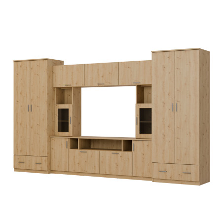 Meblościanka z nadstawkami, dużymi szafami i miejscem na TV 370×210 cm Dąb Dziki – TAJGA