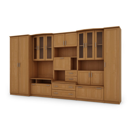 Duża meblościanka z pojemnymi szafami, witrynami i barkiem 360×200 cm Olcha – HAVANA