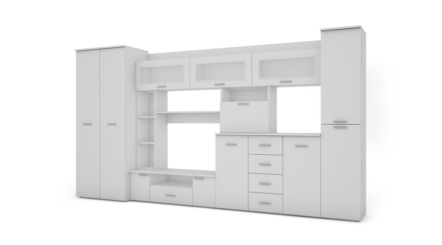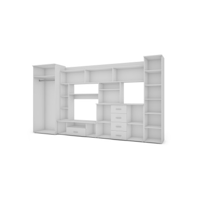 Meblościanka z komodą, barkami i szafą 360×200 cm Biała – KENA