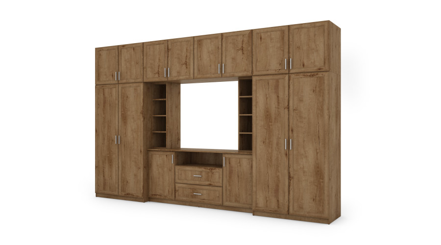 Elegancka meblościanka z szafami i półką RTV 380×240 cm Dąb Lefkas – DAKO