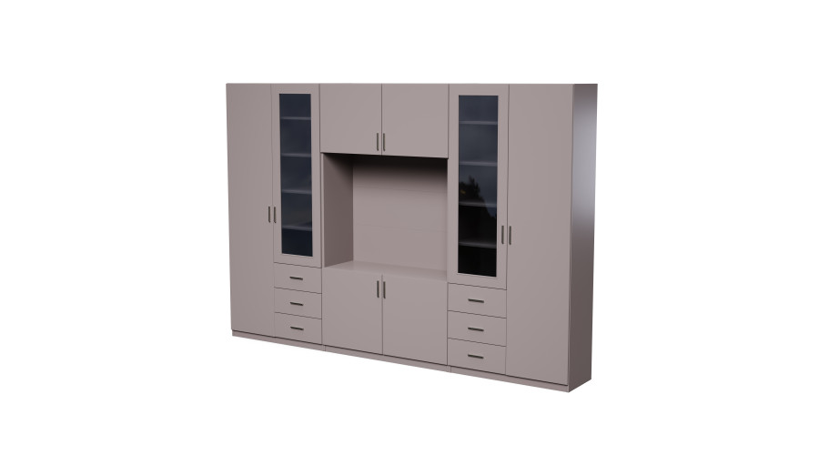 Meblościanka z miejscem na telewizor, szafami i witrynami 320×220 cm Sepia – LIVIO