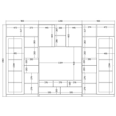 - nadstawek zamykanych z półkami na całej szerokości zestawu, dzięki którym całkowita wysokość meblościanki to aż 240 cm.