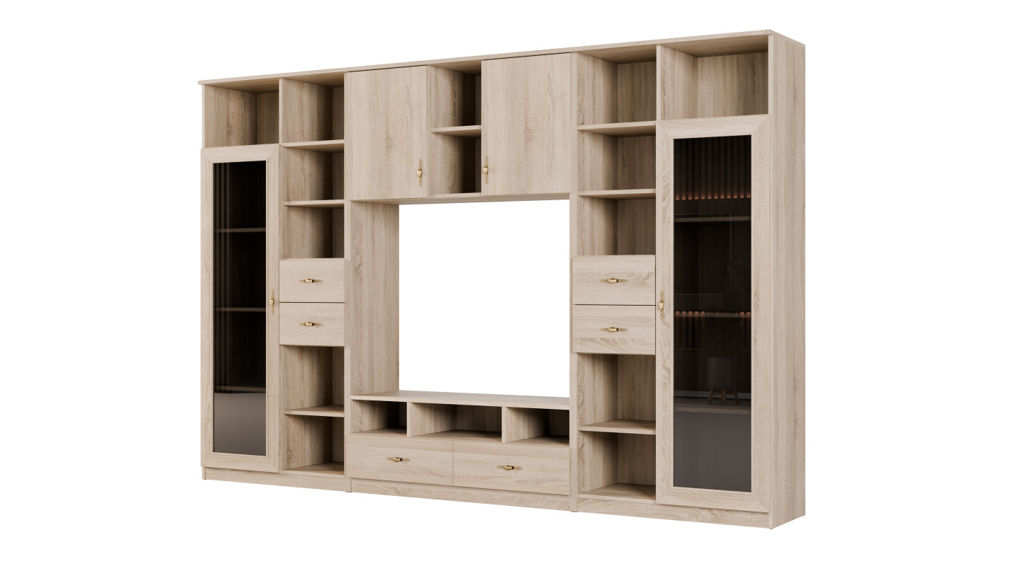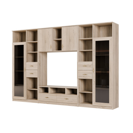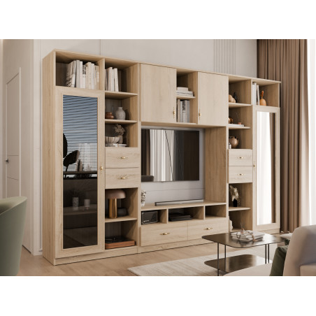 Meblościanka RTV z biblioteczką i szklaną witryną 300×200 cm Sonoma Jasna – Agata