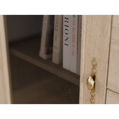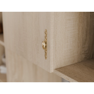 Kolor Sonoma Jasna wyróżnia się subtelnym usłojeniem i neutralnym odcieniem, który łatwo dopasować do innych mebli oraz dodatków. Zestaw wyposażony jest w uchwyty w kolorze srebrnym lub w stylu retro w odcieniu starego złota, co pozwala nadać całości bardziej nowoczesny lub klasyczny wygląd. Meblościanka Agata Sonoma Jasna to praktyczne i estetyczne rozwiązanie dla osób poszukujących jasnej, uporządkowanej zabudowy salonu na lata.