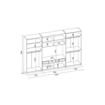 Nowoczesna meblościanka z dużymi szafami, półkami, RTV i szufladami 350×227 cm Biała – SCANDI