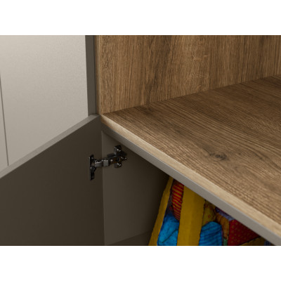 Fronty w kolorze Kalahari dostępne są również w wersji Deep Matt Anti-Fingerprint. Matowe fronty meblowe są odporne na plamy i ślady palców, co sprawia że meblościanka zachowuje nienaganný wygląd na co dzień bez konieczności ciągłego czyszczenia. To idealne rozwiązanie dla rodzin z dziećmi lub osób ceniących bezobsługowe wykończenie.