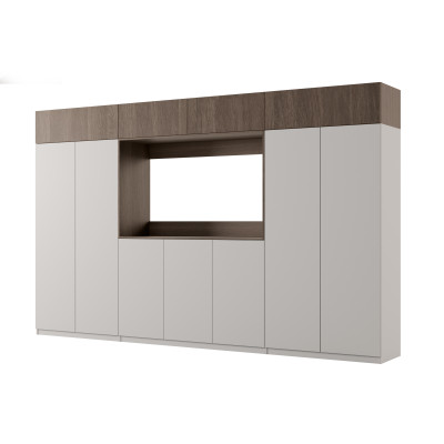 Zabudowa dostępna jest również w wersji z frontami Deep Matt Anti-Fingerprint. Matowe fronty meblowe są odporne na plamy i ślady palców, co sprawia że meblościanka zachowuje nienaganný wygląd na co dzień bez konieczności ciągłego czyszczenia. To idealne rozwiązanie dla rodzin z dziećmi lub osób ceniących bezobsługowe wykończenie.