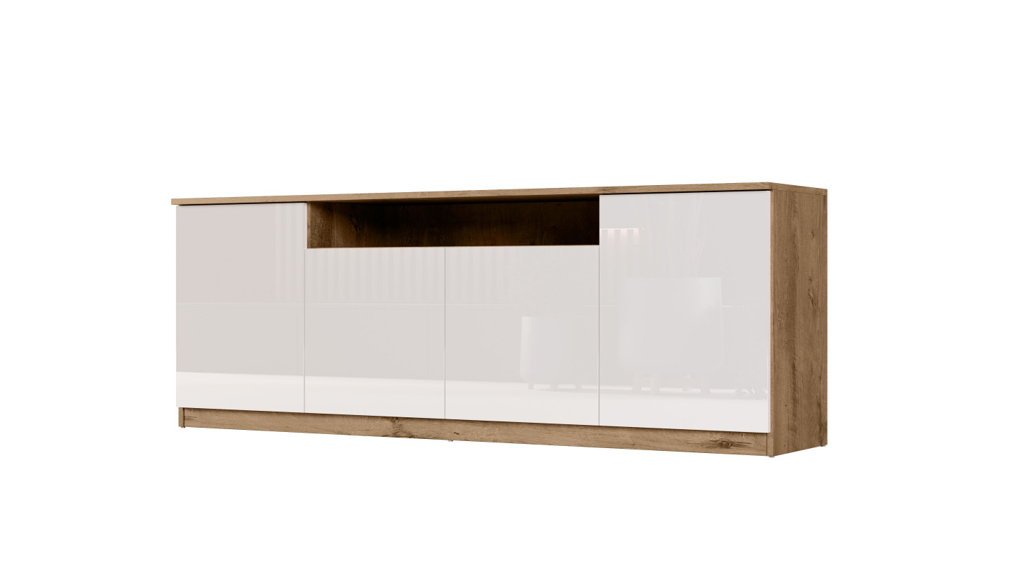 Nowoczesna komoda z systemem Tip-On 200×44 cm Dąb Lefkas / Wysoki Połysk Biały – Luna