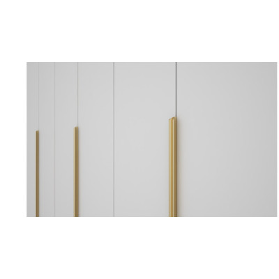 Szafa 6 drzwiowa z lustrem otwierana 240 x 240 cm – biała ze złotymi uchwytami