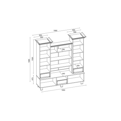 Navia 180 cm to rozbudowana witryna osadzona na wysokich nogach, zaprojektowana jako reprezentacyjny element salonu lub jadalni. Szeroka, segmentowa konstrukcja łączy strefę przeszkloną z półkami na książki oraz zamykanym barkiem, tworząc funkcjonalny i uporządkowany układ.