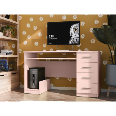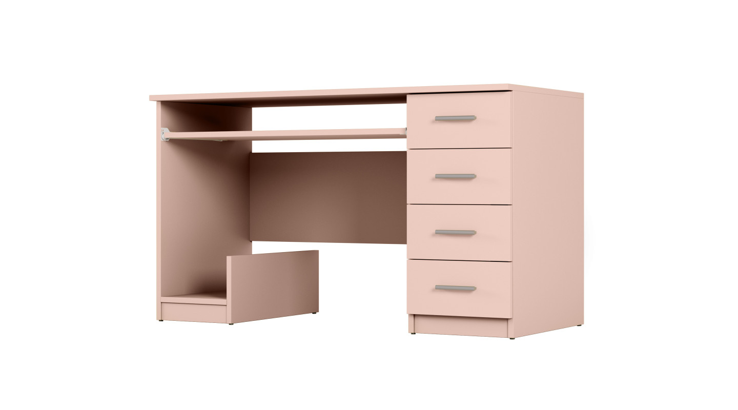 Biroul 130 are un blat spațios pentru lucru. 4 sertare și un raft retractabil vor găzdui toate accesoriile necesare. Biroul nostru se potrivește perfect atât la birou, în camera copilului, camera adolescentului, cabinet, cât și în dormitor, îndeplinind rolul unei măsuțe de toaletă. Poate fi umplut fără risc cu obiecte necesare. Utilizat corect, va servi gospodăriei mulți ani.