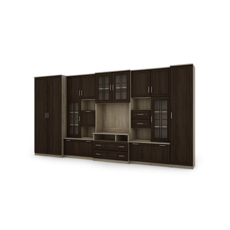 Mobilierul constă dintr-un dulap mare cu bară de agățat, dulap de lenjerie cu cinci rafturi, vitrină din sticlă, sertare, bar, nișe deschise și o nișă mare pentru televizor. Este o soluție excelentă pentru persoanele care au nevoie de mult spațiu de depozitare pentru diverse obiecte, de la haine la cărți, decorațiuni sau echipamente electronice. Peretele mobil LENA permite menținerea ordinii în cameră, oferind în același timp acces ușor la lucrurile necesare.