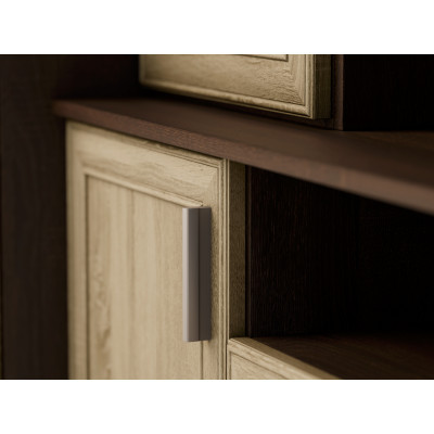- extensie TV, care conține dulapuri care se deschid și vitrine din sticlă, precum și multe rafturi care se închid.