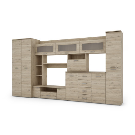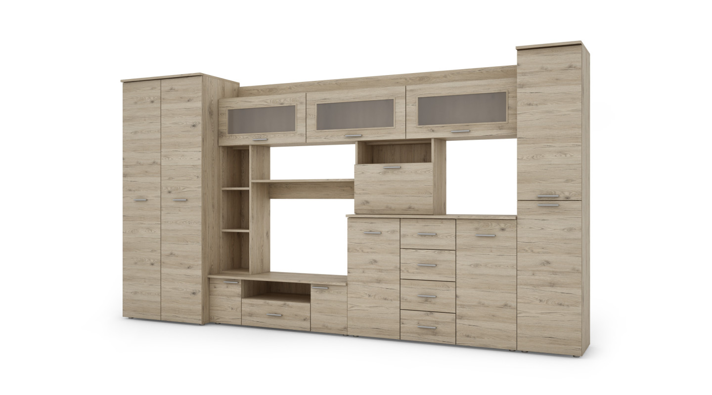 Căutați un perete mobil modern care să încapă toate lucrurile dumneavoastră? Alegeți elegantul nostru perete mobil KENA cu dulap, rafturi, sertare și spațiu RTV, care combină funcționalitatea cu estetica într-unul singur. Oferă mult spațiu de depozitare, soluții convenabile pentru expunerea echipamentelor multimedia și obiectelor unice precum fotografii, cărți sau sticlărie elegantă.