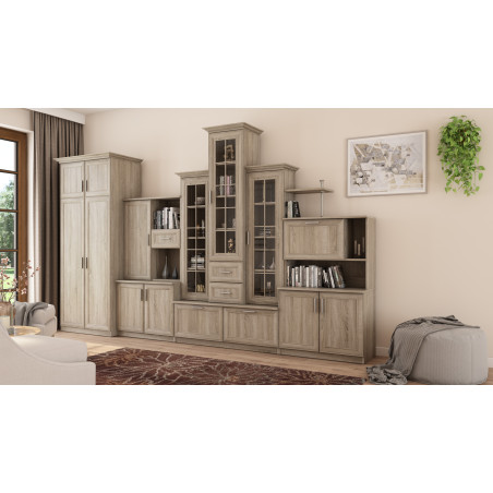 Mobilierul nostru de perete HADES oferă nu doar rafturi spațioase și vitrine, ci și un dulap încăpător unde vă puteți depozita lucrurile. De la haine și accesorii la cărți și echipamente electronice - totul își va găsi locul în acest mobilier de perete multifuncțional.