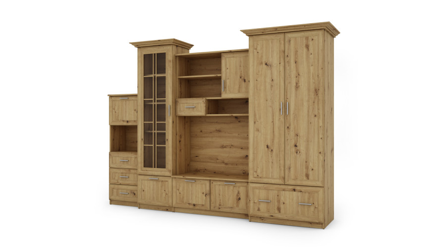 Un perete mobil cu dulap, vitrină impresionantă, loc pentru televizor și bar creează multe posibilități de amenajare. Este mobilierul ideal pentru living, sufragerie sau cameră de recreere. Prin potrivirea corespunzătoare a stilului și coloristicii peretelui mobil, poți crea un interior unic și elegant, care să fie atât funcțional cât și confortabil.