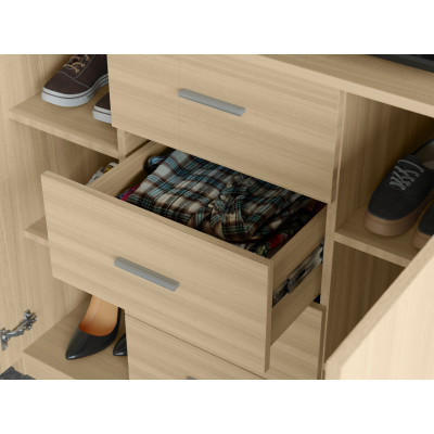 - două dulapuri foarte încăpătoare cu bare pentru umerașe și rafturi.