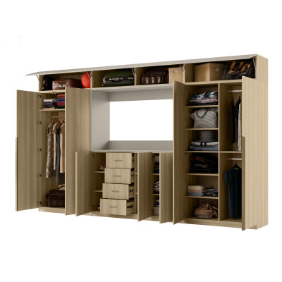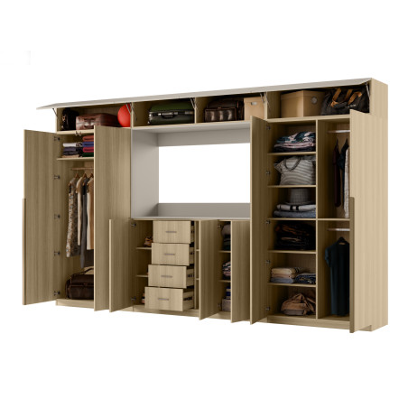 Dako este un ansamblu foarte lat (3,80 m) și foarte înalt (2,40 m). Are extensii mai adânci decât cele standard (0,36 m) și dulapuri (0,55 m) cu bare pentru umerașe, dulap pentru lenjerie cu 5 rafturi, vitrine de sticlă, sertare, bar, nișe deschise și închise, și chiar o nișă multimedia mare.