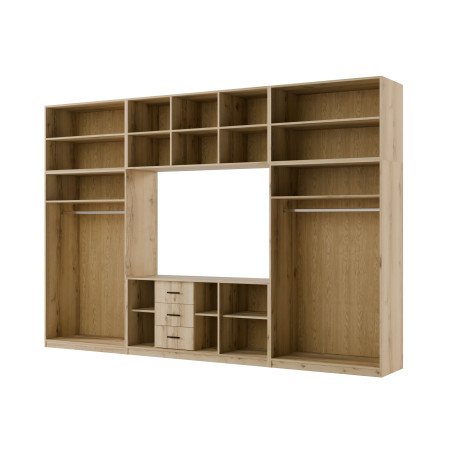 Dako este un ansamblu foarte lat (3,80 m) și foarte înalt (2,40 m). Are extensii mai adânci decât cele standard (0,36 m) și dulapuri (0,55 m) cu bare pentru umerașe, dulap pentru lenjerie cu 5 rafturi, vitrine de sticlă, sertare, bar, nișe deschise și închise, și chiar o nișă multimedia mare.